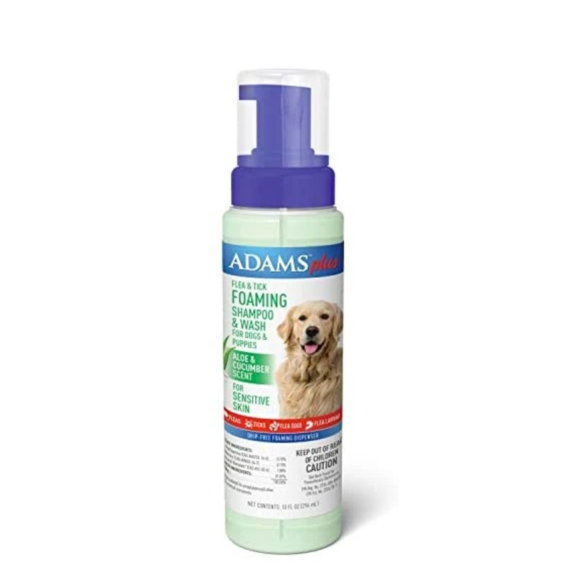 Help protect your pet from pests while encouraging healthy skin and a shiny coat! Adams Plus Flea & Tick Aloe & Cucumber Scent Foaming Dog Shampoo is formulated for sidekicks with sensitive skin and contains deep conditioning ingredients to help remove dandruff, dirt and scales. But formula doesnt stop there, because it also contains Insect Growth Regulator (IGR) to kill flea eggs and larvae for 28 days to help stop re-infestation!