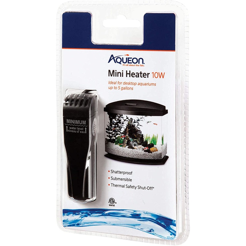 Mini Fish Tank HeaterAqueon Mini Heater provides warmth to tropical fish. Designed with a shatterproof housing and thermal safety shut-off, this compact and completely submersible mini heater is perfect for desktop aquariums with a minimum size of 2.5 gall