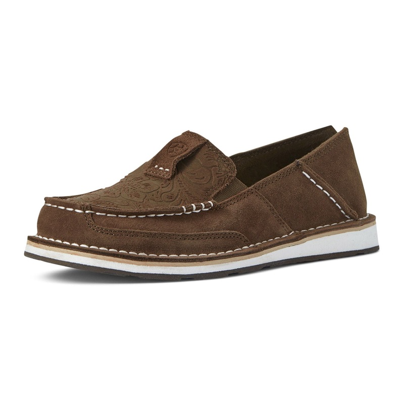 Ariat Women's Cruiser, Brown Suede Floral Kick off your boots and slip into our comfy Cruisers. Equal parts cute and casual, they're perfect for running errands or strolling around town. With so many colors and patterns, it's temping to collect them all. F