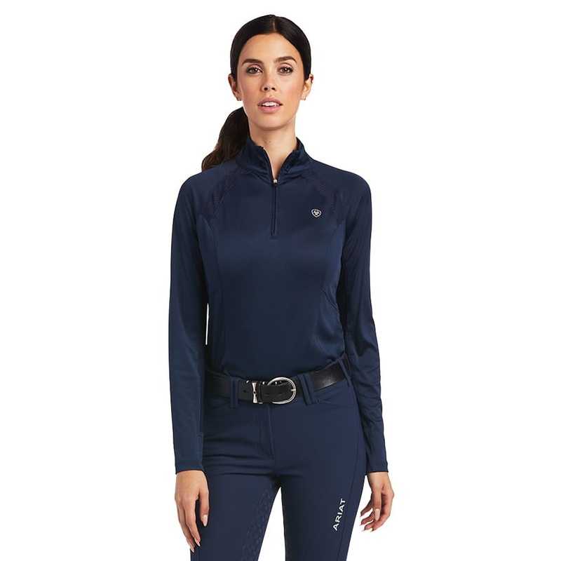 Ariat Womens Sunstopper 2.0 1/4 Zip Long Sleeve Baselayer, Navy