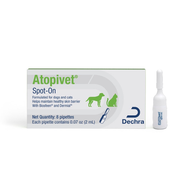 Atopivet Spot-On, 8 x 2 mL Pipettes, is a targeted solution for preserving a resilient and healthy skin barrier. This specialized spot-on treatment is meticulously formulated to support skin integrity, promoting optimal moisture balance and protection. With a convenient and precise application through the included pipettes, Atopivet offers a proactive approach to skin health, helping to alleviate discomfort and enhance the overall well-being of your pet. Formulated with care, this product provides a reliable and effective means to nurture a strong skin barrier, ensuring your pet enjoys the comfort of supple and resilient skin.