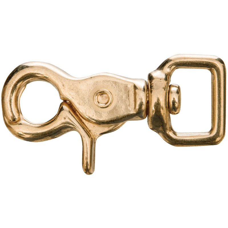 Solid Brass Trigger Snap with Square Swivel EyeThis solid brass trigger snap, also known as a scissor snap, is designed for strength, durability, and ease of use. Featuring a swiveling square eye, it allows for smooth rotation and prevents tangling, making