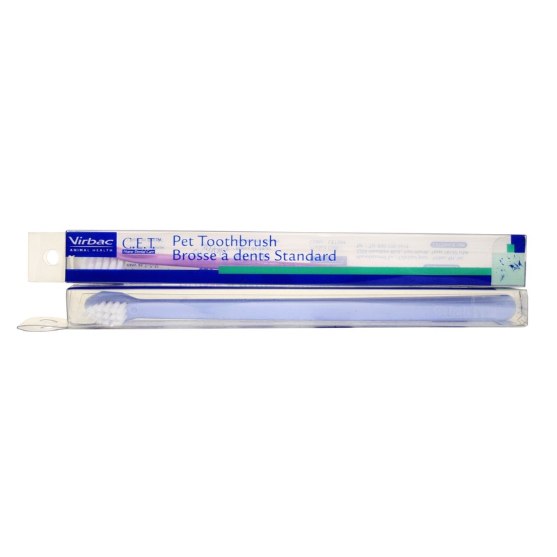 C.E.T. Pet ToothbrushC.E.T. Single-Ended Pet toothbrush features soft bristles to provide comfort to your pet while brushing. Small head with reverse angle. Works best for toy and small breed dogs and some cats. Color may vary.DIRECTIONS:Use the C.E.T. Sin