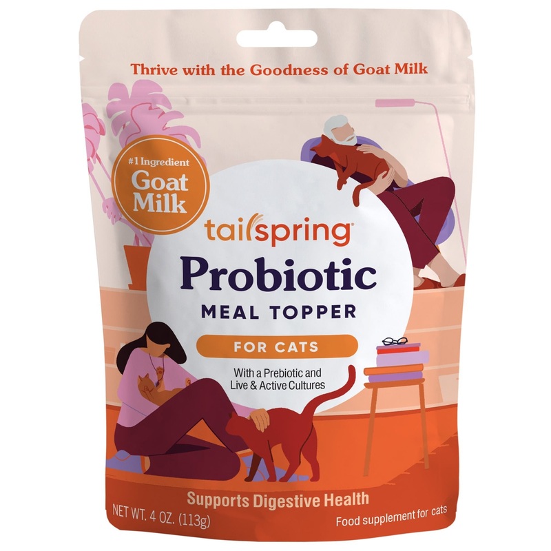 Cat Probiotic Tailspring Meal Topper, 4 ozDelicious goat milk-based meal toppers for adult cats. Every serving delivers nutrition and the benefits of a prebiotic and live active cultures to support optimal digestive health.Benefits:goat milk is 1st ingredi