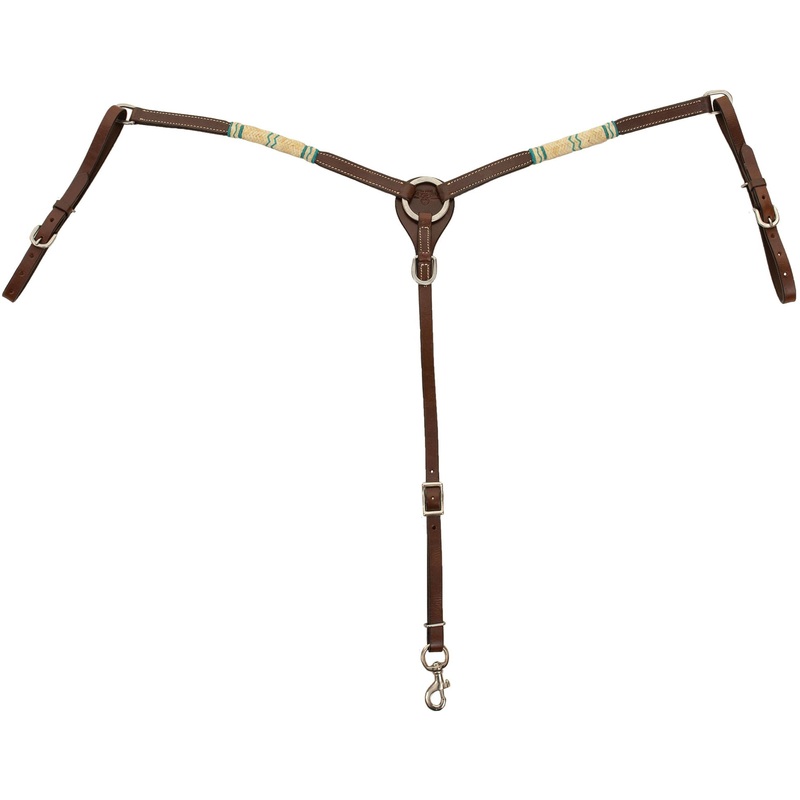 Circle Y Day Money Breast Collar, FullIntroducing the Day Money Breast Collar! This beautiful piece is perfect for those who want a little something extra in their equine wardrobe. The chocolate finish is rich and luxurious, while the natural and turquoise