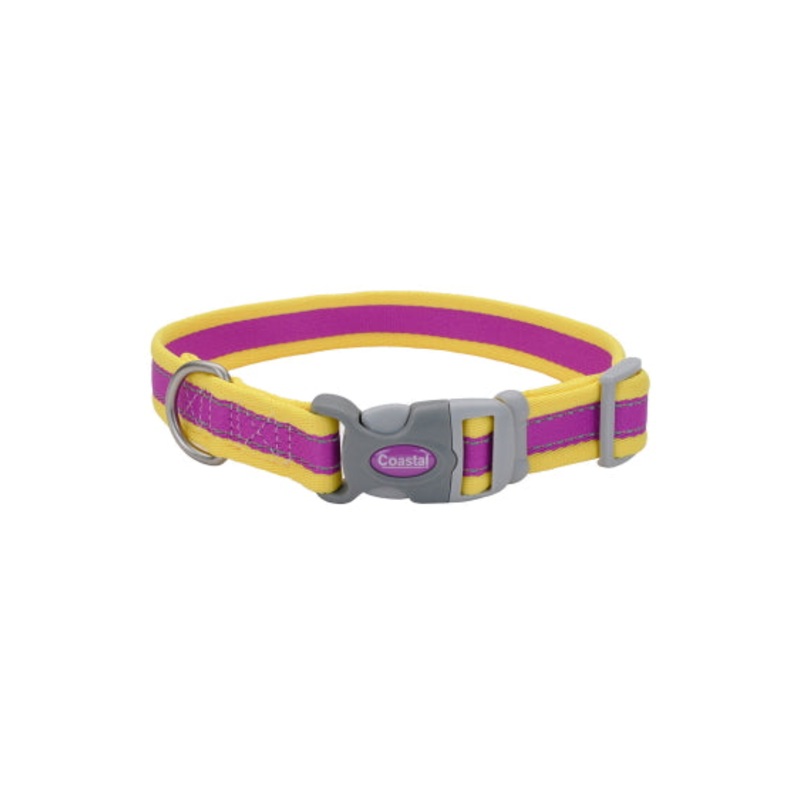 Coastal Yellow and Purple LeashKeep your dog active and comfortable with the Pro Reflective Adjustable Dog Collar! The bright, sporty collar is made with soft padded webbing for added comfort. Its reflective material is seamlessly woven into the collar to