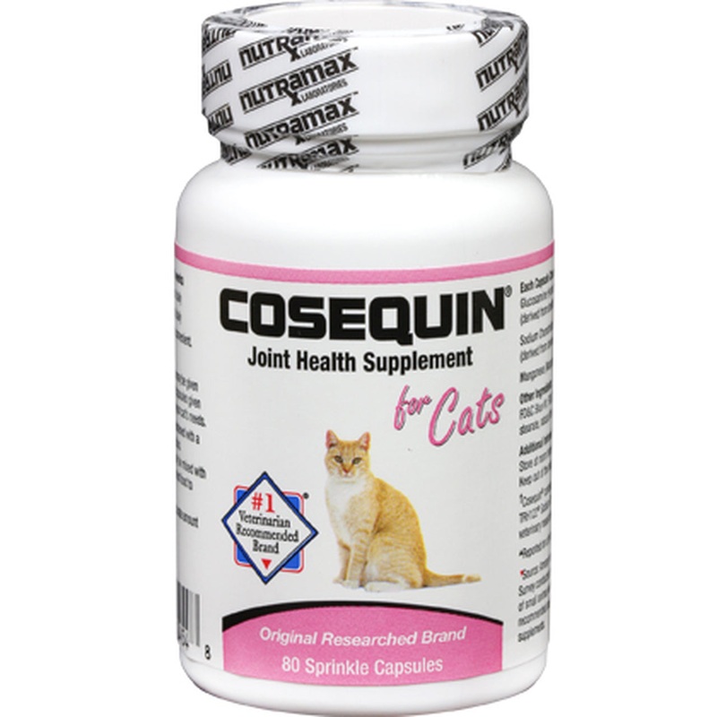 Cosequinis the #1 veterinarian recommended retail joint health supplement brand.You and your veterinarian want the best for your pet, and Cosequinis here to support that effort. Cosequinis formulated with a trademarked combination of ingredients. Cosequinfor Cats contains FCHG49Glucosamine Hydrochloride and TRH122Sodium Chondroitin Sulfate* in a convenient sprinkle capsule and is available in an 80 count carton from your veterinarian.