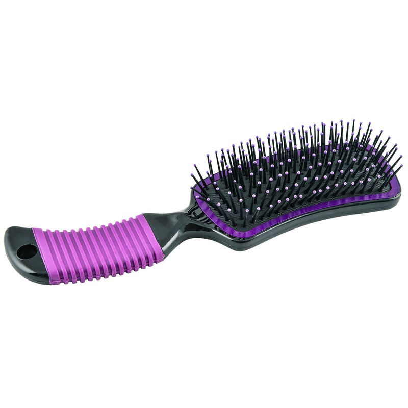 Partrade Curved Mane BrushThe Curved Mane Brush from Partrade has a comfy, rubber-grip handle and pin bristles.Colors: Purple, Red, Blue or Pink