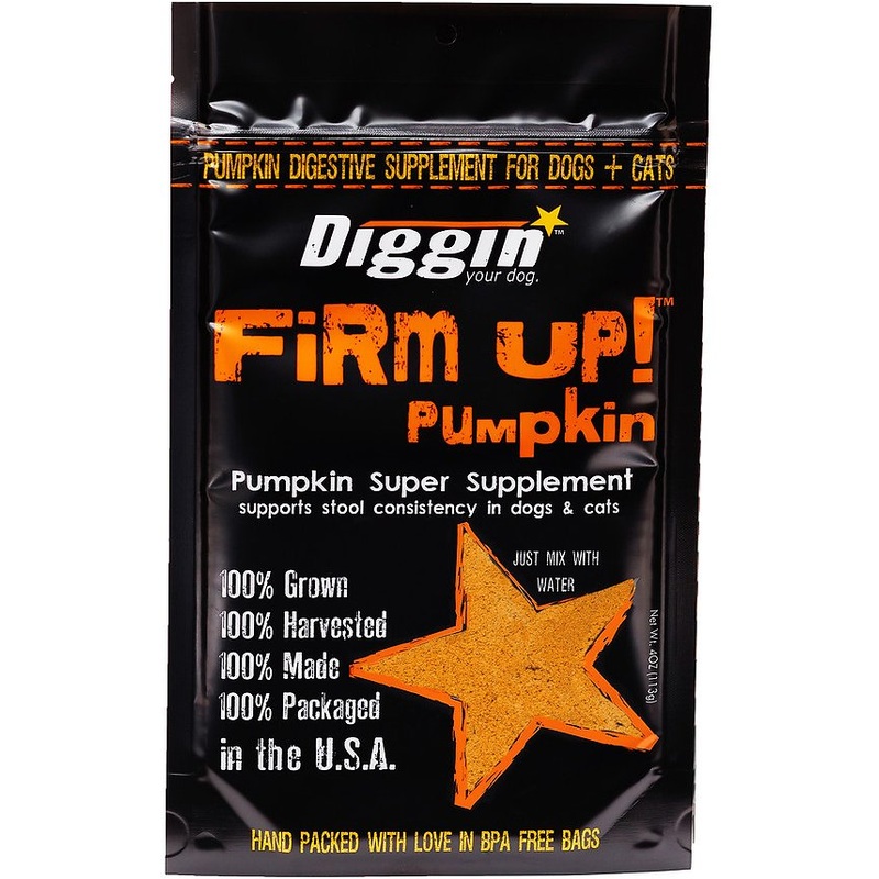 Diggin’ Your Dog Firm Up! Pumpkin Super Dog & Cat Supplement quickly and effectively supports and maintains proper digestion and normal bowel function in pets. Its a great supplement to use when transitioning to a new or different food, or just for pets with naturally loose stool. Fiber contained in this supplement helps digestion and makes the switch much easier on your pets digestive tract. This supplement also helps regulate overall bowel function for less mess and easier cleanup.