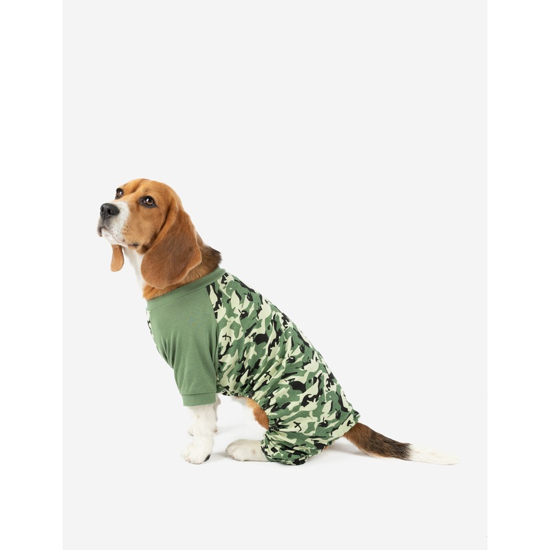 The furry members of the house will enjoy their own special pair of Dog Camouflage Pajamas, and they are sure to be included in the matching fun. These special pajamas are made up of a four-legged design, perfect for every single paw to fit in comfortably. Its elastic waist and 100% cotton makeup are also ideal for napping or running around the yard. Its green and black camouflage design fit well with other similar family sets for a pleasant matching experience. Sizes are from X-Small to XXX-Large, keep in mind outfits will shrink after washing due to the cotton material. The Dog Camouflage Pajamas are guaranteed to provide your beloved pup with the best comfort possible, all while keeping them in the best style!