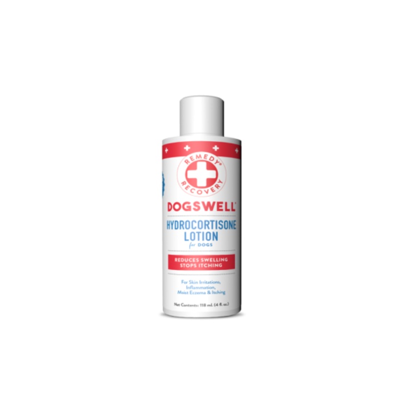 Dogswell Remedy + Recovery Hydrocortisone Lotion helps heal skin irritations, inflammations, wet eczema, and flea bite dermatitis. This soothing lotion helps relieve itching and swelling.Comes in a 4oz Bottle.DIRECTIONSPre-bathe animal with a mild shampoo