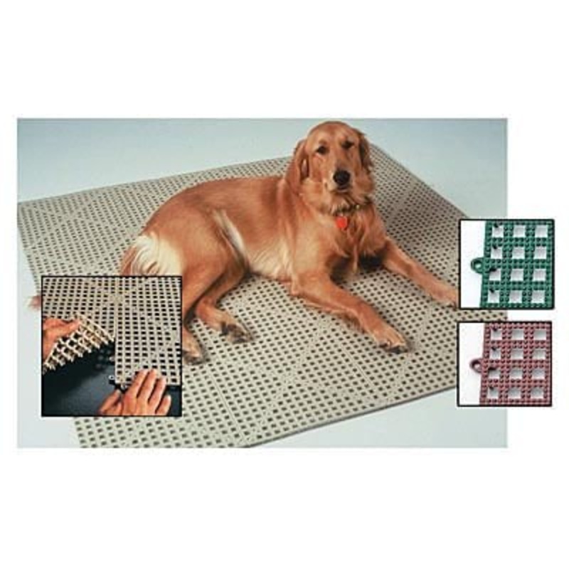 Dri-Dek Tiles, 1' x 1' EachKeeps pets comfortable and dry. Puts a thick bed of soft vinyl between sensitive skin and the hard surface of the concrete floor, kennel, cage or crate. Great for whelping boxes and grooming shops. The raised grids provide a dura