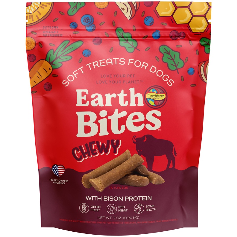 EARTHBITES CHEWY BACON 7ozMake your pup's day extra special with Earthborn Holistics new, delicious EarthBites Soft & Chewy Dog Treats! Our yummy treats offer the savory flavor of salmon, lamb, bison, and turkey in one amazing experience. Not to mention a