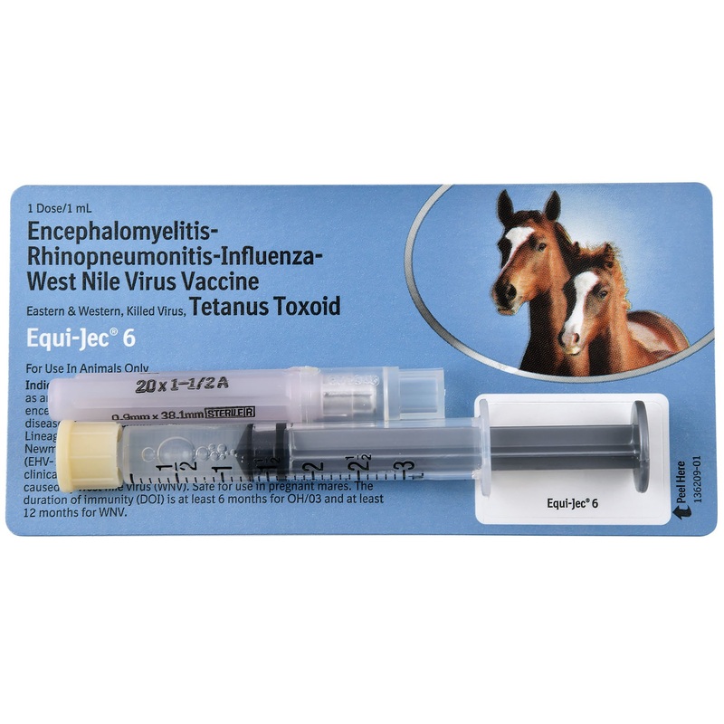 For the vaccination of healthy horses 4 months or older as an aid in the prevention of disease caused by eastern and western encephalomyelitis and tetanus; as an aid in the reduction of respiratory disease caused by equine influenza virus (EIV). Aids in the reduction of severity of clinical disease, and an aid in the prevention of viremia and mortality caused by west nile virus. Safe for use in pregnant mares. The duration of immunity (DOI) is at least 6 months for OH/03 and at least 12 months for WNV.