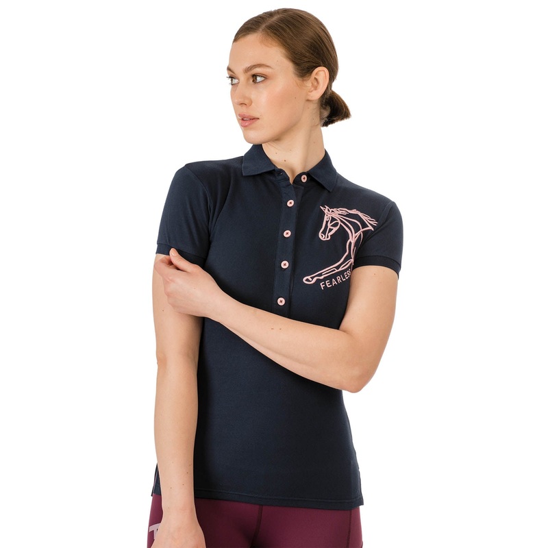 Flamboro Polo by Horseware IrelandHorseware Ireland's best selling top! Made from a cotton/spandex blend that wears great all day! Light and breathable and features embroidered horse on the front chest. Machine washable. These junior sized fitted polos als