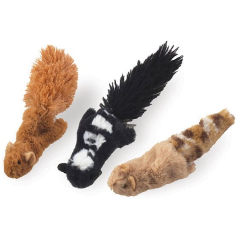 Forest Skinneeez for CatsThese realistic animal toys feature fun fabrics and a stuffing-free design, making them perfect for cats who love to pounce and play. Each toy contains catnip to keep your feline engaged and entertained.Measures: Approx. 4.5" LAsso
