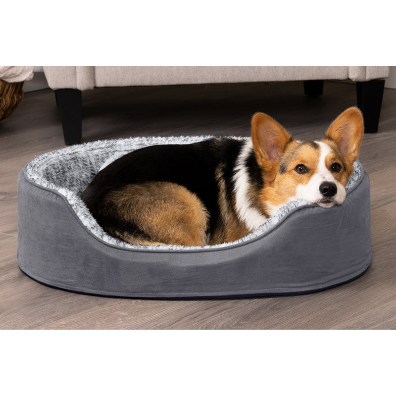 TheFurHaven Two-Tone Faux Fur & Suede Oval Dog Bedis so soft, you’ll wish we made one in your size! Designed for pets who like to curl-up in comfort, this traditional-style “nest” or “cuddler” dog and cat bed features medical-grade foam walls tosupport hips and back.