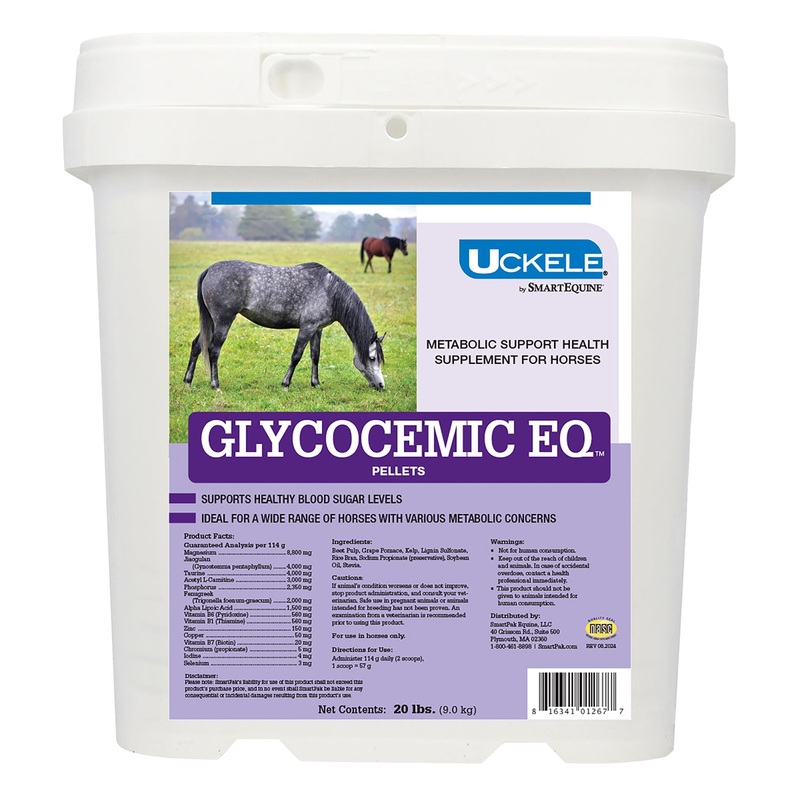 Glycocemic EQ Pellets features targeted ingredients to help manage insulin sensitivity and thyroid function. This comprehensive formula supports your horses metabolism and blood sugar regulation, making it ideal for a wide range of metabolic concerns. Suitable for various diets and hay sources, Glycocemic EQ Pellets are palatable and easy to feed. When combined with proper exercise and veterinary care, this supplement can help your horse achieve and maintain a healthy weight. Key ingredients include magnesium, chromium, and zinc for insulin support, acetyl-l-carnitine for antioxidant and blood sugar benefits, and jiaogulan for insulin sensitivity and circulation. Additional nutrients such as iodine and selenium aid in thyroid function, while biotin promotes hoof strength and integrity.