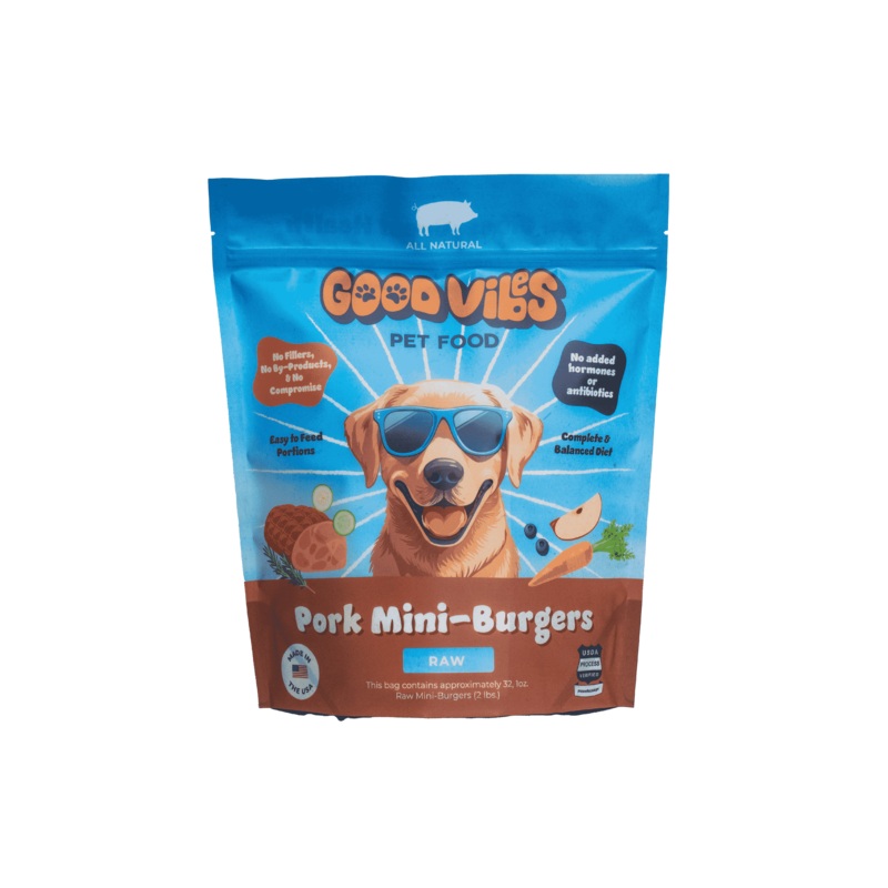 Good vibes Raw Pork Recipe recipe is formulated to meet the nutritional levels established by the AAFCO dog food nutritional profiles for all life stages