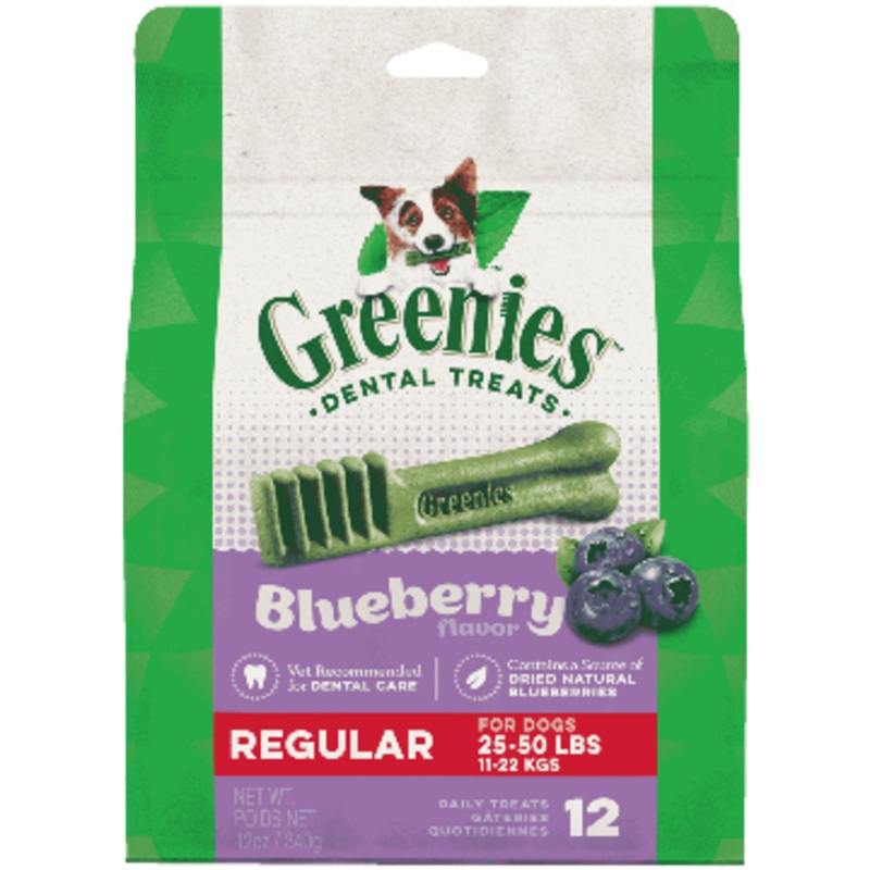 One GREENIES Blueberry Flavor Dental Treat a day is all it takes for clean teeth, fresh breath, and a happy dog. Your dog can’t wait to sink their teeth into these delicious dental dog chews, because they are packed with blueberry flavor and feature a delightfully chewy texture that fights plaque and tartar. Irresistibly tasty and incredibly powerful, GREENIES Treats for Dogs are vet-recommended for at-home oral health care and accepted by the VOHC (Veterinary Oral Health Council.) Best of all, these natural dog treats are made with highly soluble ingredients that are safe and easy to digest. Give your dog the mouth-wowing treat that helps promote their overall health with GREENIES Dog Treats. Natural Dog Treats Plus Vitamins, Minerals, and Other Nutrients.