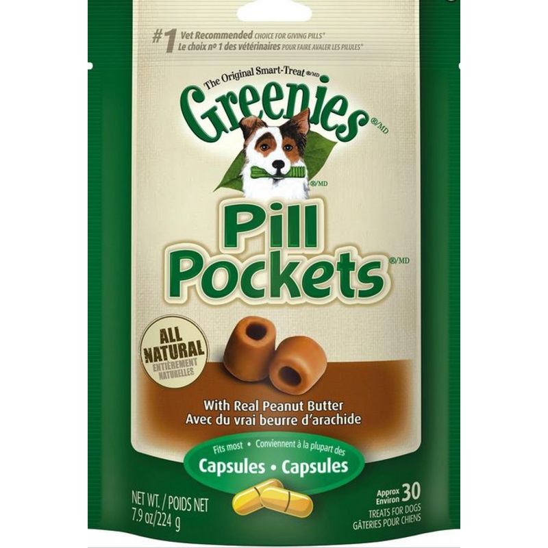 Giving your pup medication no longer has to be a hassle! Greenies Pill Pockets Canine Peanut Butter Dog Treats are the perfect, low calorie way to disguise pills and eliminate the stress of giving your furry companion medicine. Greenies Pill Pockets Canine Peanut Butter Dog Treats mask both the smell and taste of the pills put inside!