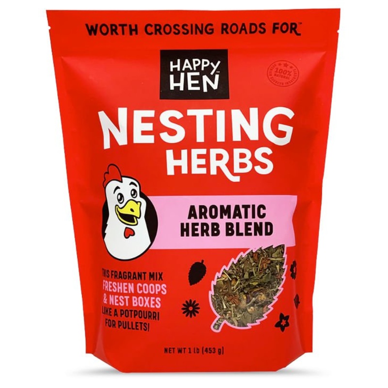 Happy Hen Nesting Herbs, Aromatic Herb Blend, 1 lb bagLooking to freshen up the coop? Nesting herbs can save your day. An all-natural blend of peppermint, thyme, and other herbs that provide the perfect potpourri for your coop. Best of all, the beneficial