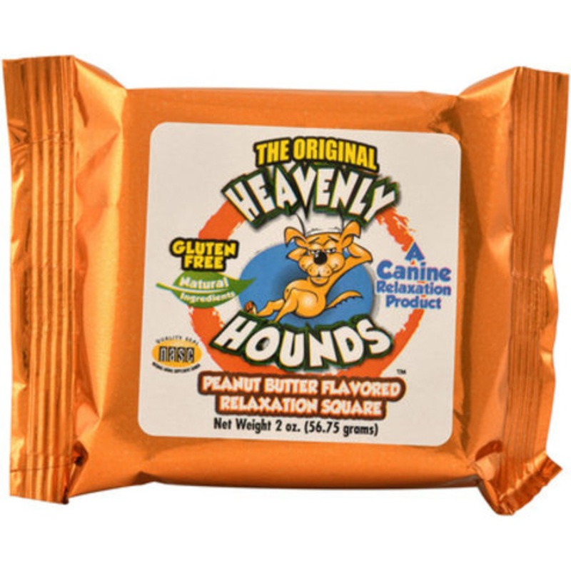 Heavenly Hounds Peanut Butter Flavored Relaxation Square, 2 OuncesConvenient option for stressful situationsThunderstorms, vet visits, fireworks, grooming, separation, etcNo Soy, No Wheat and No CornNatural ingredients with added vitamins and mineralsvaler