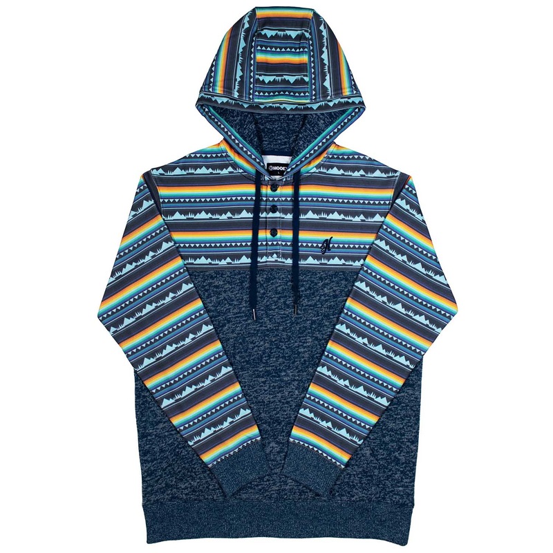 Hooey Jimmy Men's Hoodie, Navy & StripeThe Hooey Jimmy Mens Hoodie has a double lined hood and reinforced cuffs and waistband.Features & Benefits:Signature Soft FeelDouble Lined HoodReinforced Cuffs and WaistbandCustom Braided Draw CordsStrengthened Kangar