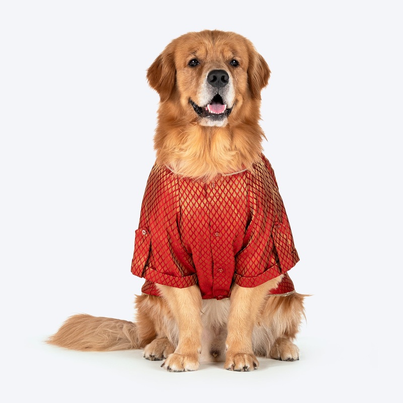 Festive, furry and dressed to have fun!Festive season is for family, so let your furry one dress the part with HUFT Dapper Doggo Kurta for dogs! Made with luxurious brocade with a 100% cotton lining, is the perfect choice for the season. The lightweight fa