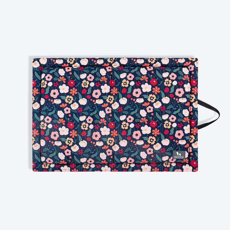 Give your furry friend the perfect place to rest with our floral, stylish and cosy dog mat. Featuring a unique floral print, this mat not only provides unbeatable comfort but also adds a chic touch to any corner of your home. The durable canvas material is designed to last, while the soft polyfill padding offers ultimate relaxation for your pet. With an anti-skid base to keep it in place, your dog can move around freely without the mat shifting. Plus, the convenient velcro closure at the back allows for easy folding, and side handles make it simple to carry and place wherever you need it. Your dog will love lounging on this mat, and you’ll love how it complements your home!