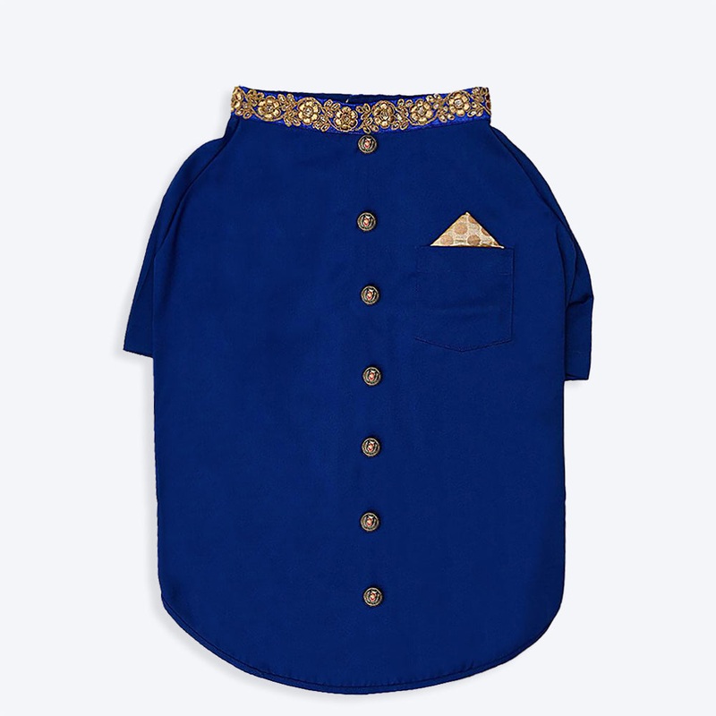 Don't leave your furries out of the festivities, this easy to wear outfit is specially designed for dogs.An ethnic outfit for your pet, this Bandh Gala outfit is trimmed with gold. Tailored to fit your pet perfectly, it does not hinder mobility.This means