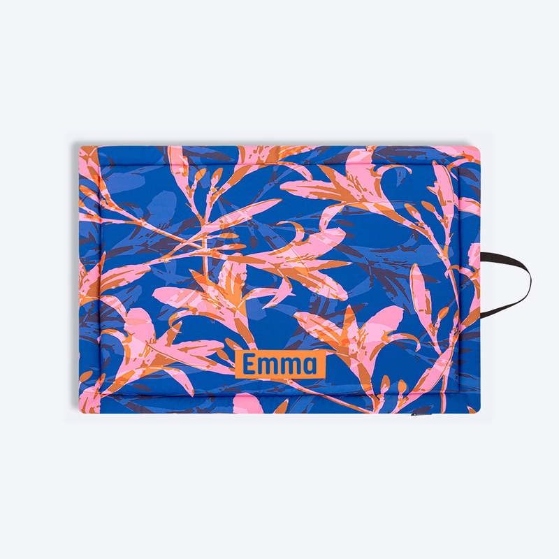 After a day filled with endless play and fun, your precious pets deserve nothing but good rest. Our mats are here to make sure they get just that. Transform your pet’s area with a touch of nature our pet mat features charming pink flowers on a calming blue background. This design effortlessly combines style and comfort, offering a soothing space for your pet.