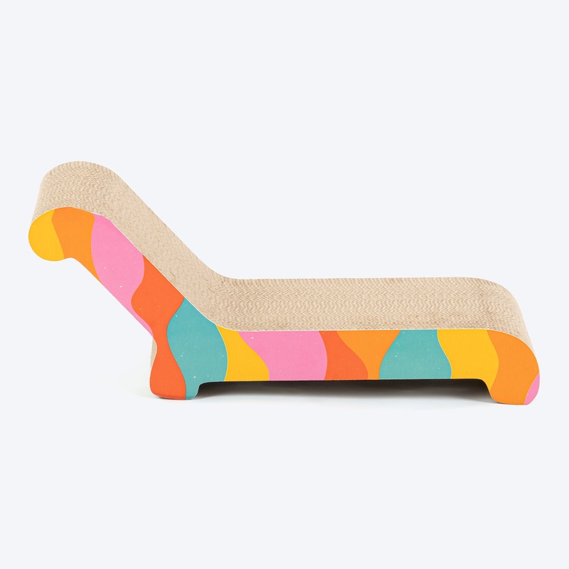 If you often find scratches and claw marks on your furniture, it might be a sign that your cat is anxious, bored or not getting enough exercise. But, those paws must not pause! Keep your furry one engaged and entertained for hours with the HUFT Purr Lounge Scratcher. Made with 100% recycled and biodegradable corrugated paper, the eco-friendly textured surface offers the ideal texture for scratching and clawing-keeping their nails healthy and away from your furniture and floors. Clawing is a natural way for cats to relieve stress, and the catnip that comes along with this scratcher adds to the mental and physical stimulation. The unique lounge-chair design is great for taking a nap if they get tired from all the fun! So let this multicoloured scratcher be a playful addition to your home, and an engaging playtime essential for your cat!