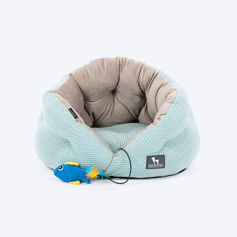 HUFT Purrfect Perch Bed With Fish Plush Toy For Cat & Puppy – Light Blue & Grey