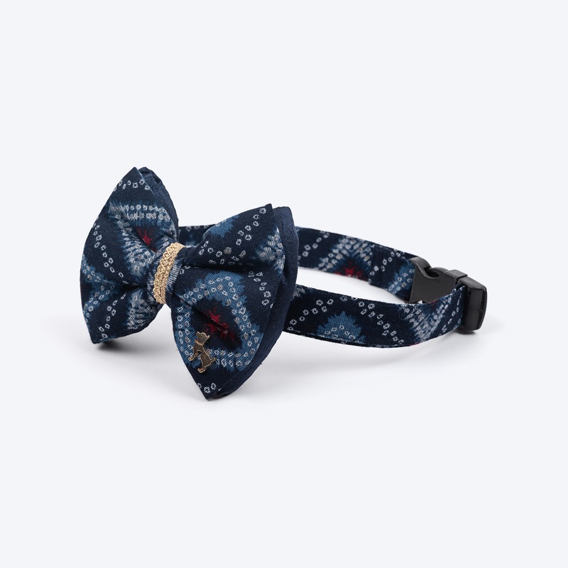 Bring festive charm to your pet’s wardrobe with the HUFT Rang Riwaz Bow Tie – a perfect mix of culture and cuteness! Made from breathable cotton, this vibrant blue bow tie features a classic Bandhani print accented with elegant golden lace and a charming golden detail for a little extra sparkle. With an adjustable strap and secure buckle closure, it ensures a comfortable fit for dogs of all sizes-perfect for capturing those special moments.