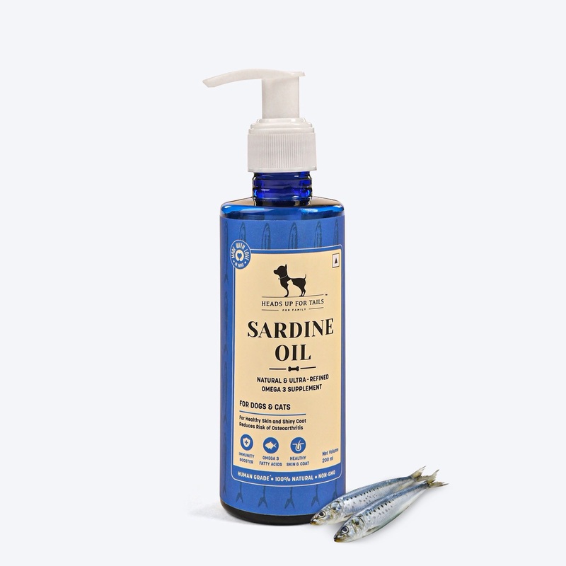 Fish oil supplements like sardine oil aid in keeping your pet in the best of health. It contains omega 3 fatty acids like EPA and DHA. These reduce shedding and ease inflammation from allergies that commonly result in itchy skin or dandruff. It also contri