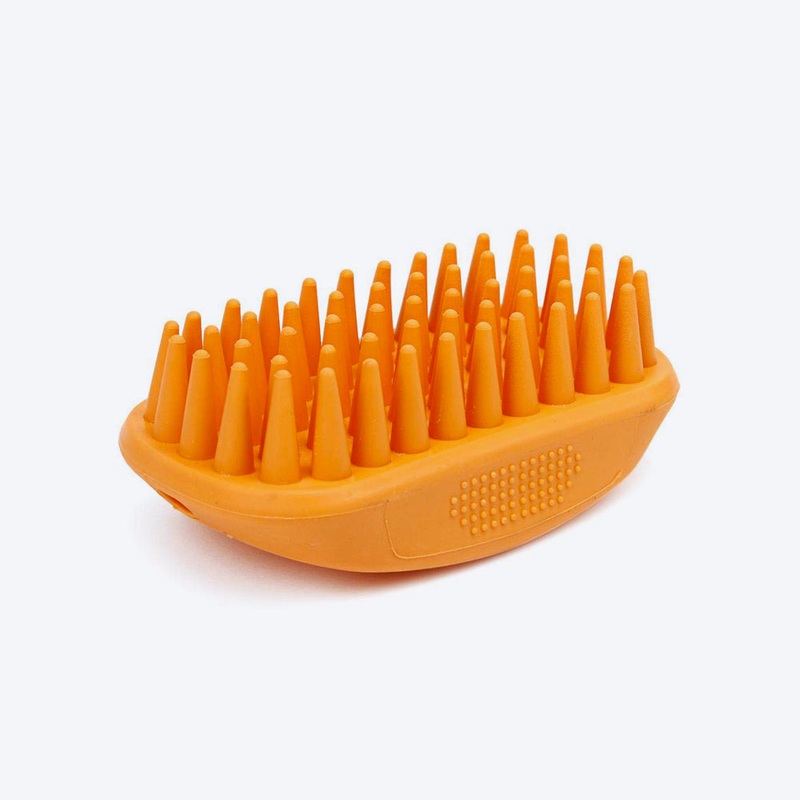 This grooming brush is used most often to help dislodge shed fur from the coat. Gently brush your pet's coat when wet and lathered with shampoo. The rubber teeth are mild on your pet's skin and encourage blood circulation which contributes to a healthy coa
