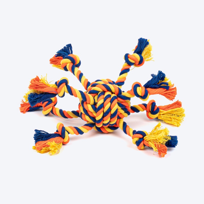 A ball, a rope toy and a great playmate: ALL IN ONE!Tug, toss and tumble to your heart's content with HUFT Tuggables! This rope toy is the best pick for an energetic game of fetch and tug. Why? The toy is made of durable yarns and features a rope ball with