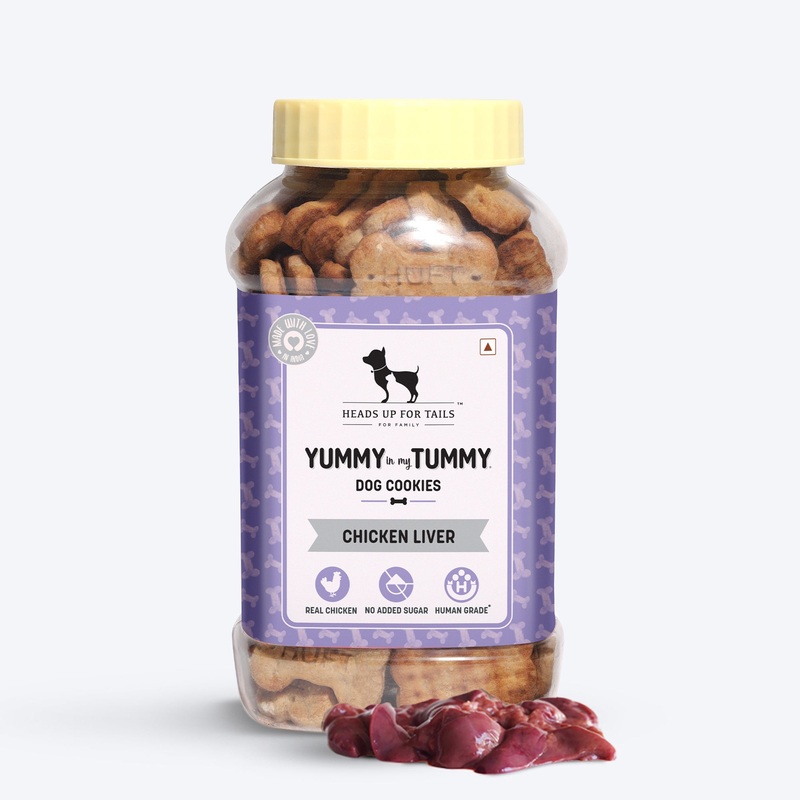 Your search ends here! Health meets taste in HUFT Yummy In My Tummy dog biscuits. Unlike other dog biscuits, ours contain no artificial flavouring or colours, harmful maida (refined flour) or processed sugar. These biscuits are made with only 100% real, human-grade ingredients like fresh chicken, chicken liver, slow-dried chicken liver powder, atta (whole wheat flour) and rice flour, along with lots of love and care!