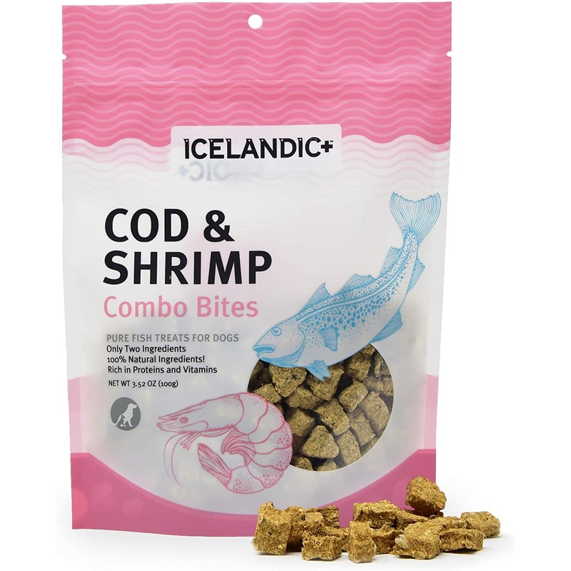 100% Pure Icelandic+ Cod & Shrimp Combo Bites, THE BEST TREATS FOR THE MOST LOVED PETSYour dog will love the irresistible taste and satisfying crunch of our nutritious and natural Cod & Shrimp Combo Bites Fish dog treats, made from just two ingredientsCod