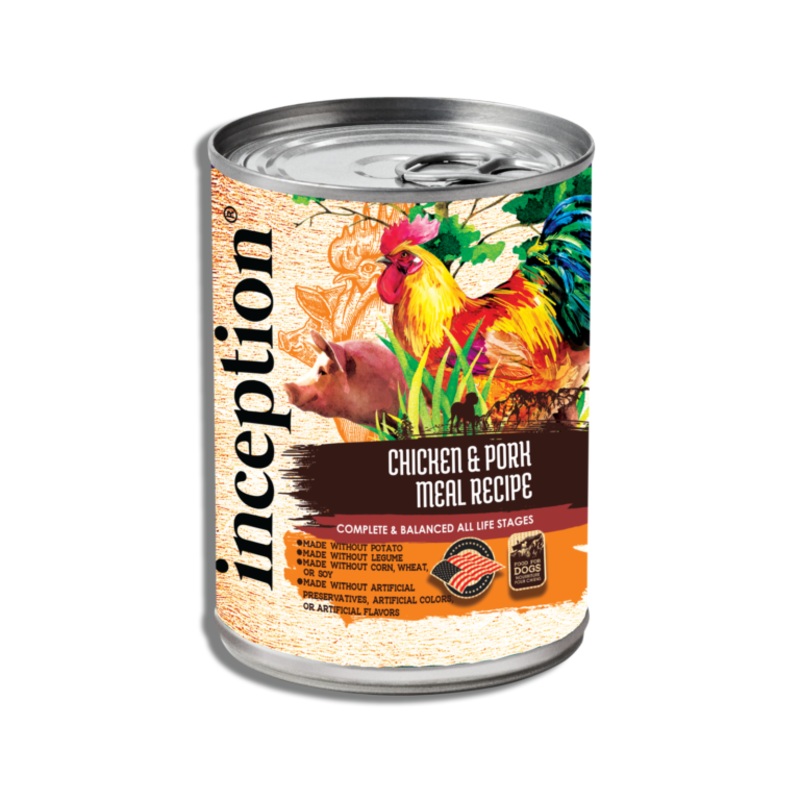 Inception Chicken & Pork Recipe for dogs is formulated to meet the nutritional levels established by the AAFCO Dog Food Nutrient Profiles for all life stages, including growth of large size dogs (70 lbs or more as an adult).