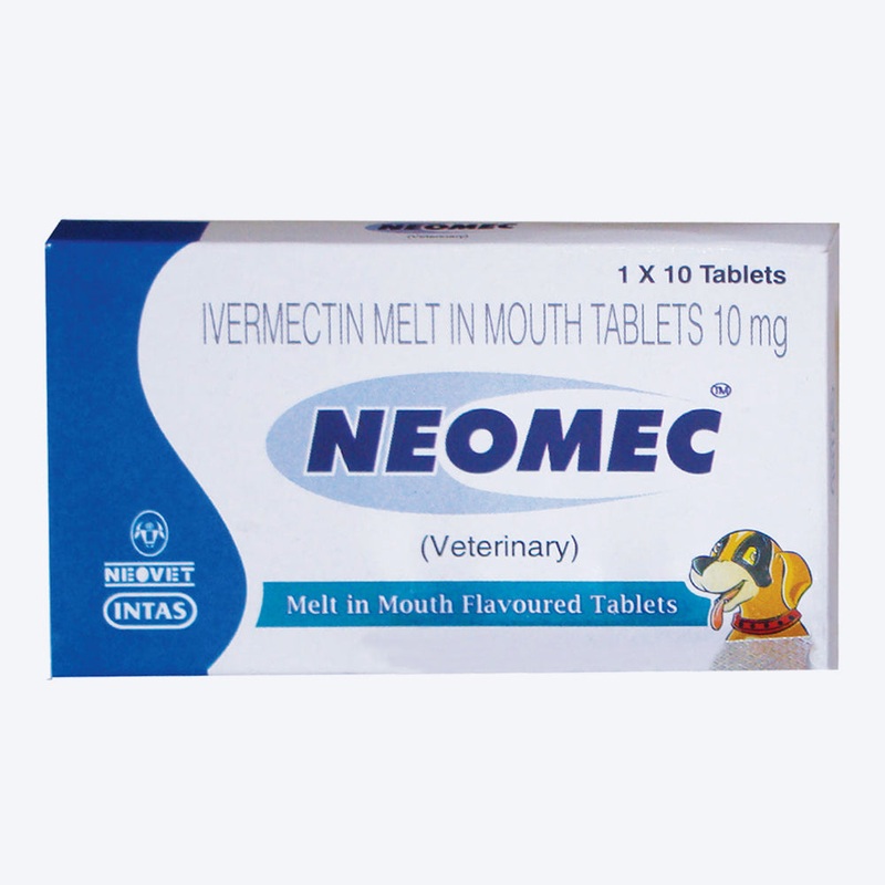 Intas Neomec 10mg Tabletis a powerful antiparasiticIntas tabletformulated withivermectinto treat and prevent various internal and external parasitic infections in dogs. This fast-acting deworming tablet is highly effective against roundworms, hookworms, and certain mange-causing mites. Trusted by vets,Intas Neomechelps improve your pet’s overall health by eliminating harmful parasites and preventing recurring infestations. Its easy-to-administer format makes it ideal for regular deworming routines.