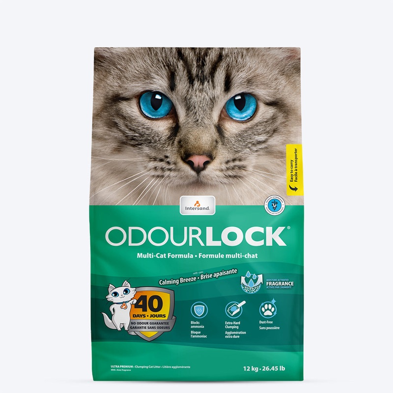 OdourLock mineral litter is produced from high-quality clay, 100% pure and natural, for maximum efficiency without compromise:OdourLock litter neutralizes ammonia formation for unparalleled control of urine and feces odours. Cat urine does not contain ammonia per se; rather, it is formed in the litter box when the urine comes into contact with oxygen and develops bacteria. Ammonia is responsible for the unpleasant smell that comes from the litter box. Our technology is activated when it comes into contact with urine to neutralize odours for more than 40 days. OdourLock is perfect for a multi-cat environment: Just scoop once a day for optimal cleanliness that will delight you and your cats!