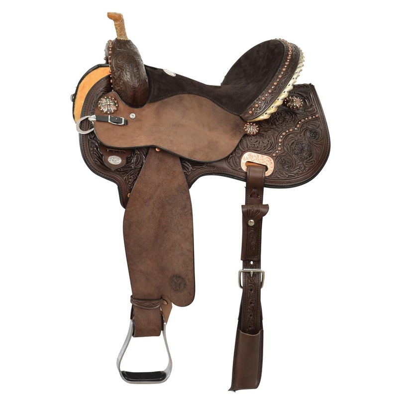 - Roughout seat jockeys, suede seat, and aluminum stirrups