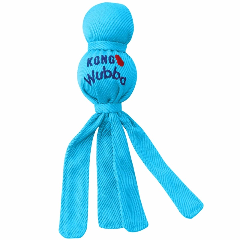 Kong WubbasInteractive tug, toss, and squeak dog toy all in one! The Kong Wubbas is constructed of durable nylon fabric covering two balls. Each has a long tail for easy pickup and throw.Colors may vary.Important: Never leave pet unattended with any treat