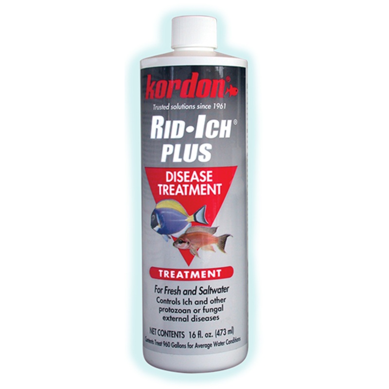 Kordon’s RidIch Plus (formerly known as Rid-Ich +) is a combination of two powerful medications which have proven effective in the control of many diseases of freshwater fishes caused by external protozoan (single cell) parasites such as white spot disease,Ichthyophthiriasis, Costia, Trichodina, Chilodonellaand saltwater external parasites such asCryptocaryonandAmyloodinium. The medication can also treat fungal infections in fishes.