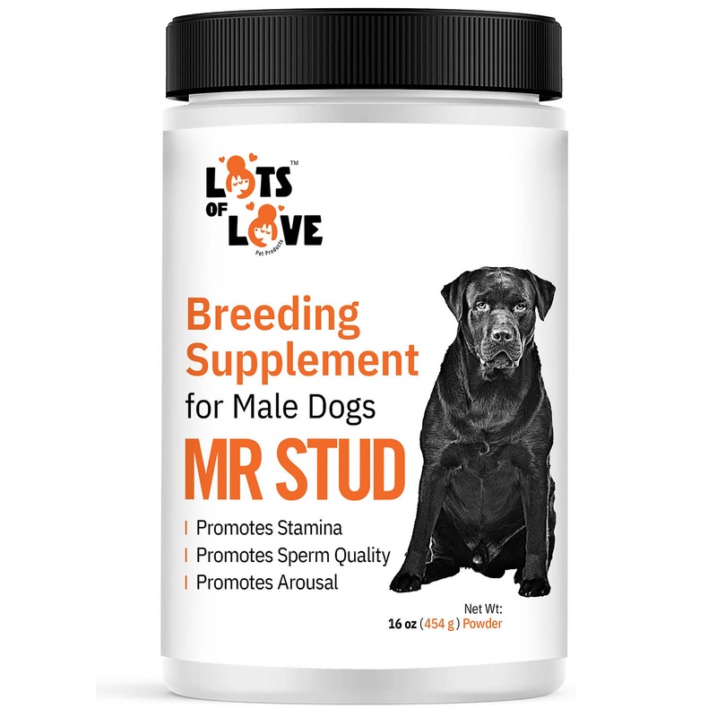 Support your breeding dogs with Mr Stud, a herbal supplement by Lots of Love Pet Products. Formulated with a unique blend of herbs, it promotes stamina, sperm production, and motility in breeding males. The aphrodisiac ingredients like horny goat weed, fo-ti root, and damiana leaf enhance sexual drive, while maca, ginseng, and other nutrients support hormone balance and fertility. Follow dosage instructions and administer during or after mealtime.