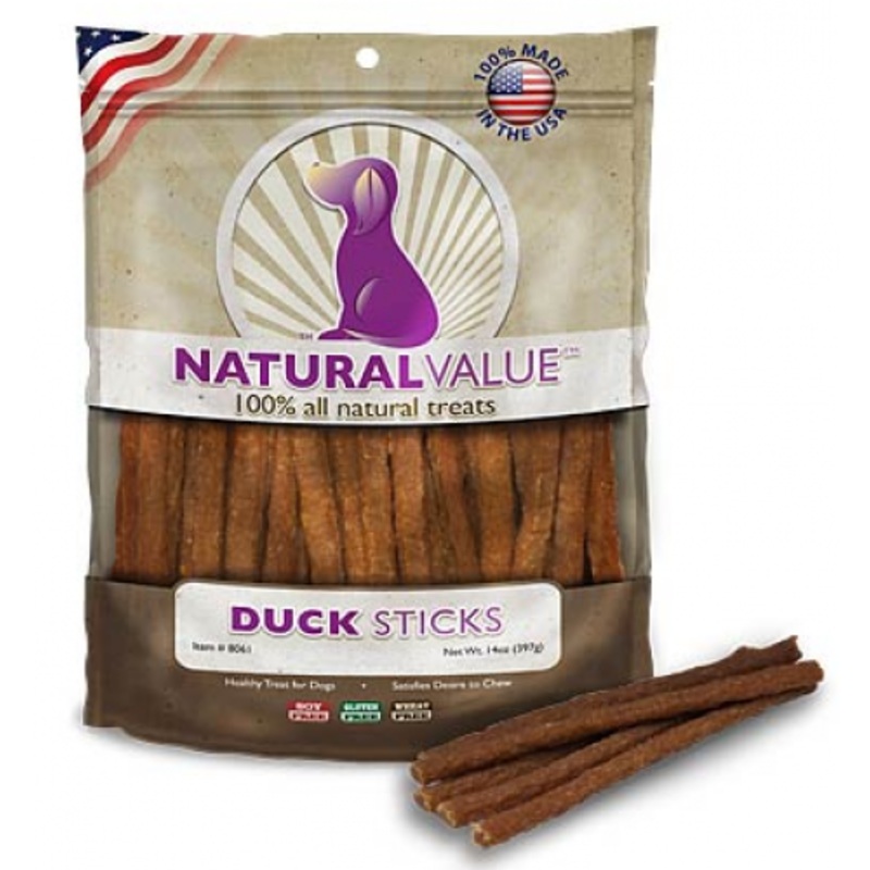 Natural Value Duck Meat Sticks are wheat, corn, soy, and gluten free, and contain no by-products. These soft-chew treats are perfect for dogs of any age or size.