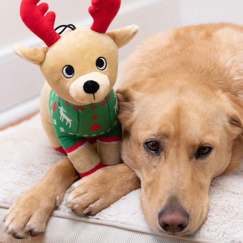 This reindeer is tough. This reindeer is fun, with crinkles and squeaks. And this reindeer is easy to clean. What more could you ask for?!