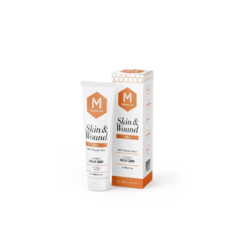 The Manuka Vet Skin & Wound Gel is a versatile, all-natural topical treatment designed to promote rapid healing of minor wounds, abrasions, and skin irritations in pets. Formulated with 100% medical-grade New Zealand Manuka honey, this gel harnesses the powerful antibacterial and moisturizing properties of Manuka honey to create an ideal environment for wound healing. It is safe to use on open wounds and can be applied directly or beneath a bandage.